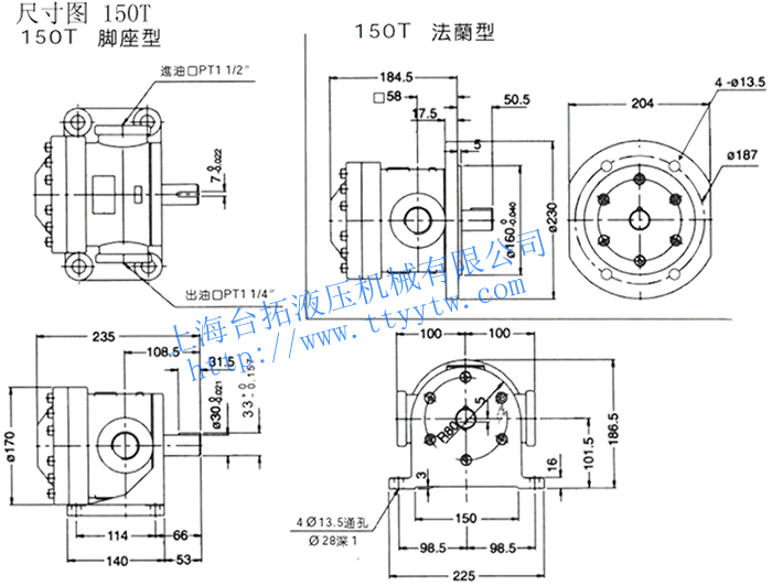低壓定量葉片泵150T尺寸圖