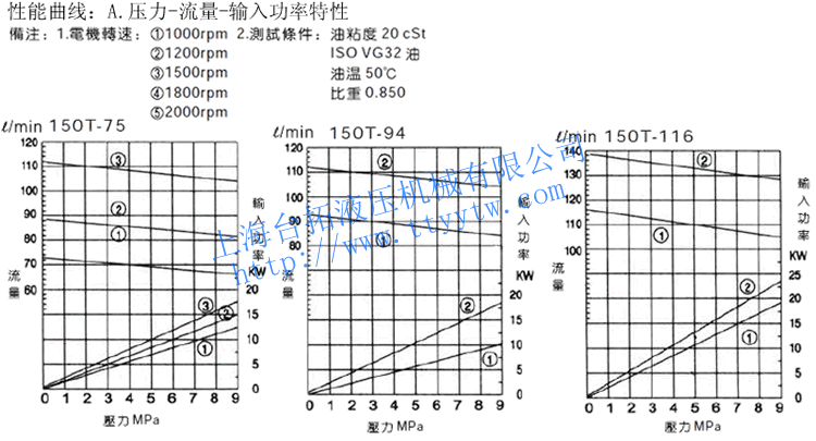 低壓定量葉片泵150T性能曲線(xiàn)
