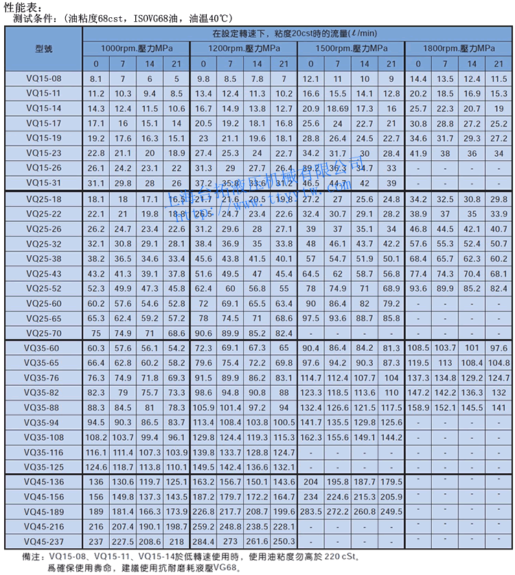 高壓定量葉片泵VQ15~VQ45性能表