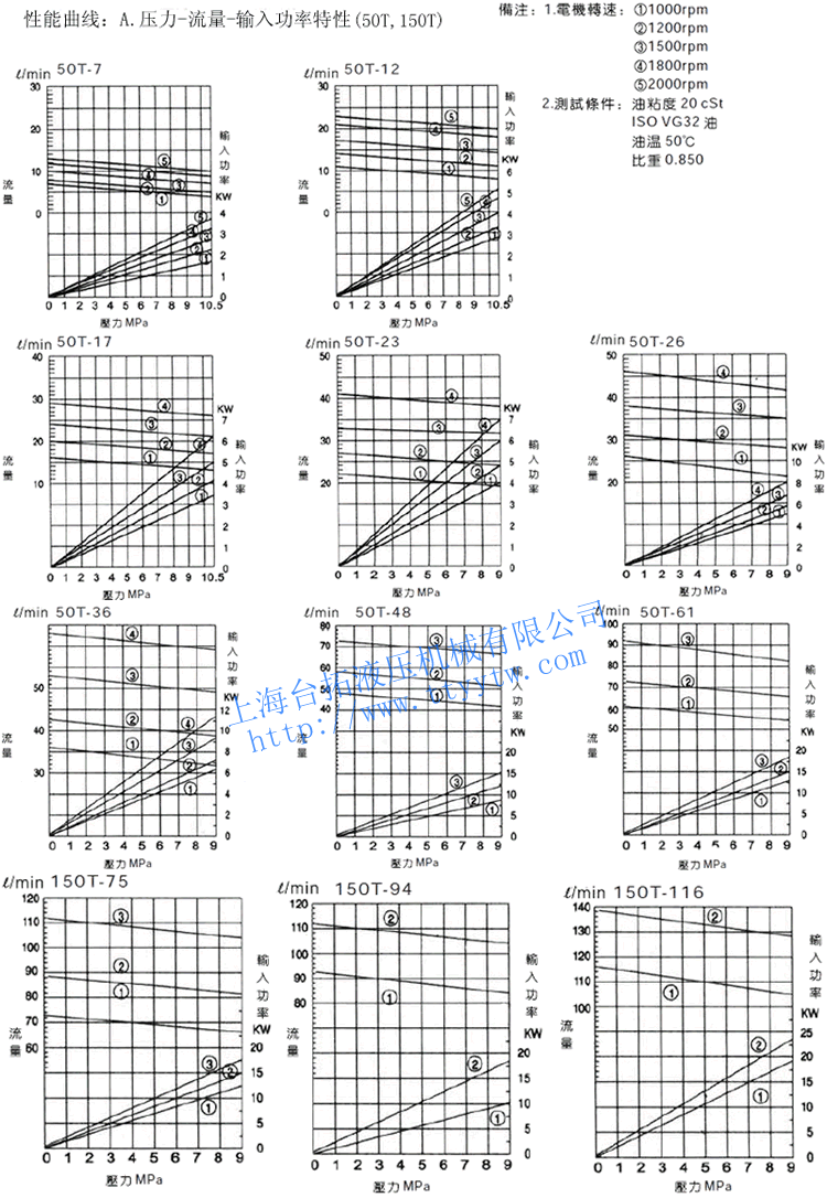 雙聯定量葉片泵50T+50T性能曲線(參考50T及150T性能曲線)