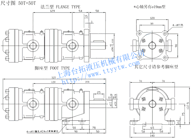 雙聯定量葉片泵50T+50T尺寸圖