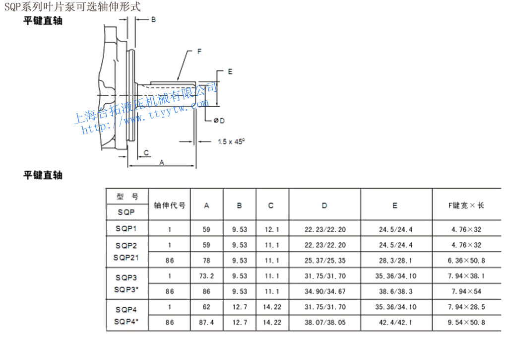 SQP系列葉片泵可選軸伸形式