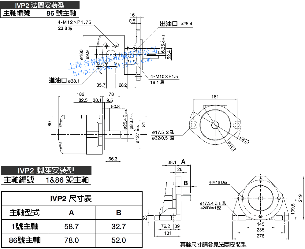 子母葉片定量泵IVP2(1號平鍵主軸)尺寸圖下載 子母葉片定量泵IVP2(86號平鍵主軸/1&86號主軸)尺寸圖下載