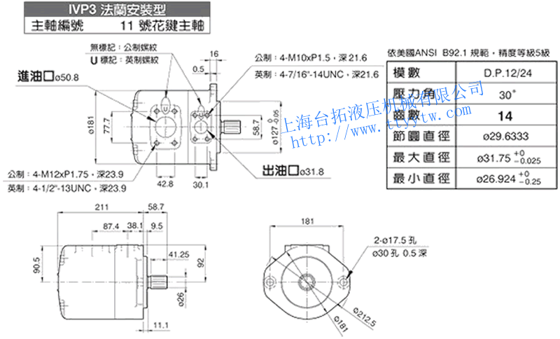 子母葉片定量泵IVP4(11號花鍵主軸)尺寸圖下載