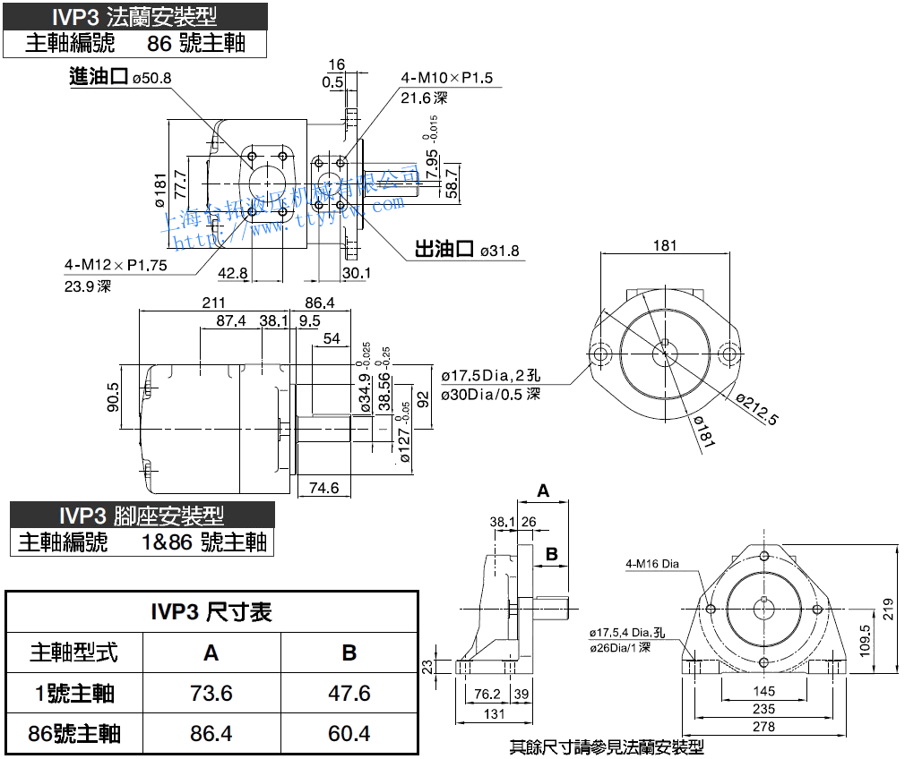 子母葉片定量泵IVP3(86號平鍵主軸/1&86號平鍵主軸)尺寸圖下載 子母葉片定量泵IVP3(11號花鍵主軸)尺寸圖下載