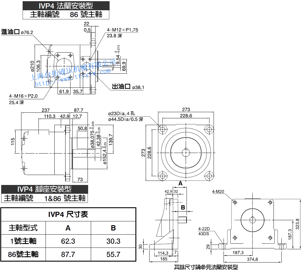 子母葉片定量泵IVP4(1號平鍵主軸)尺寸圖下載 子母葉片定量泵IVP4(86號平鍵主軸/1&86號主軸)尺寸圖下載