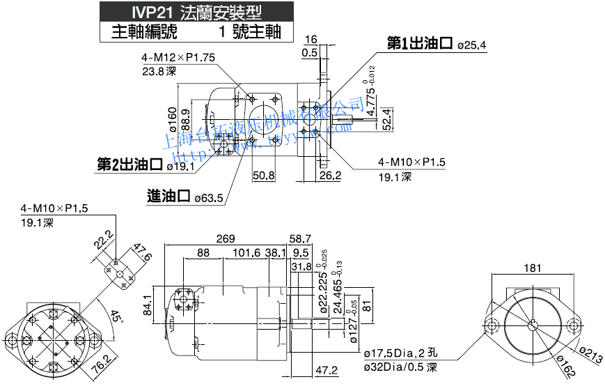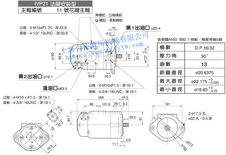 雙聯子母葉片定量泵IVP21(11號花鍵主軸)尺寸圖下載  雙聯子母葉片定量泵IVP31(1號平鍵主軸)尺寸圖下載