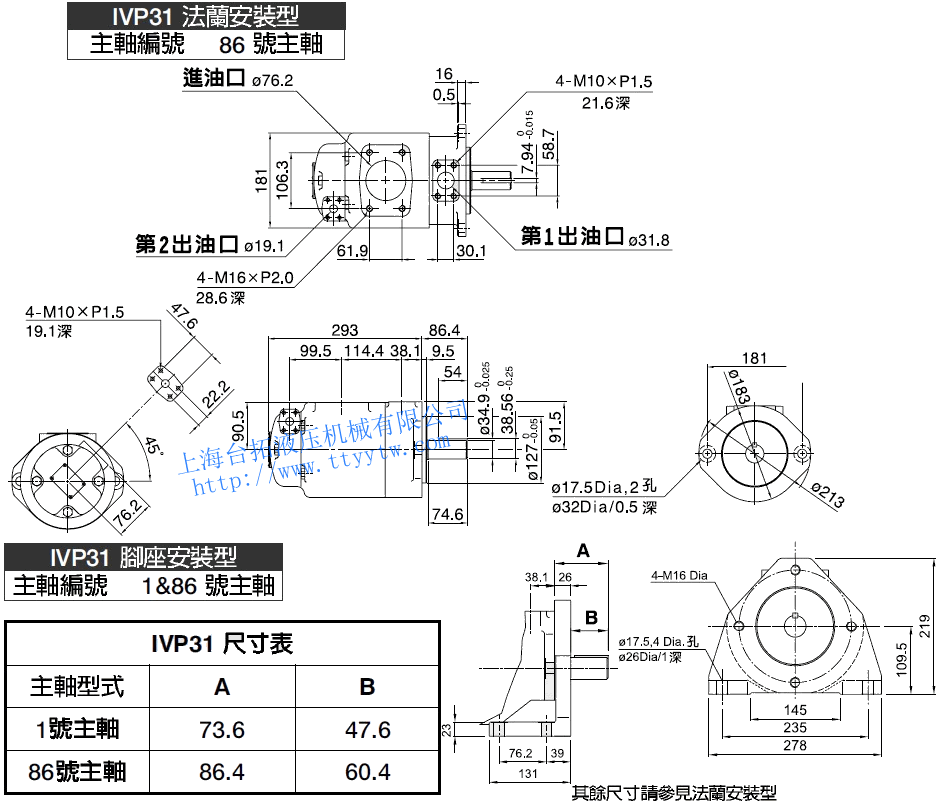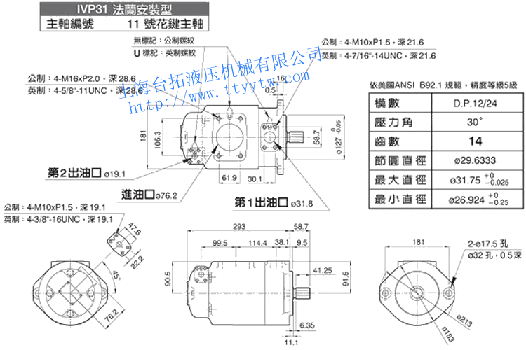 雙聯子母葉片定量泵IVP31(86號平鍵主軸/1&86號主軸)尺寸圖下載  雙聯子母葉片定量泵IVP31(11號花鍵主軸)尺寸圖下載
