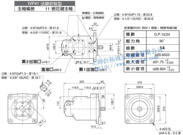 雙聯子母葉片定量泵IVP41(86號平鍵主軸/1&86號主軸)尺寸圖下載  雙聯子母葉片定量泵IVP41(11號花鍵主軸)尺寸圖下載