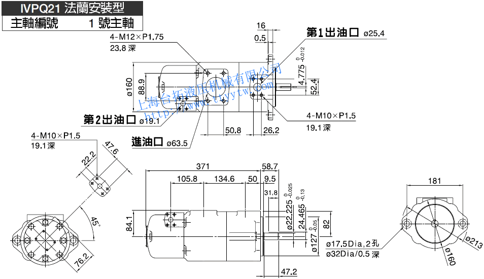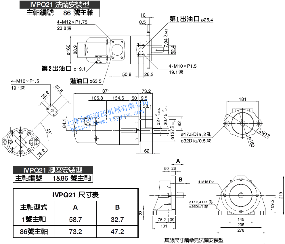 雙聯子母葉片定量泵IVPQ21(1號平鍵主軸)尺寸圖下載 雙聯子母葉片定量泵IVPQ21(86號平鍵主軸/1&86號主軸)尺寸圖下載