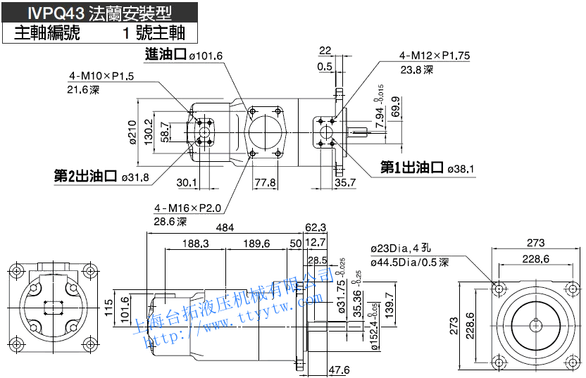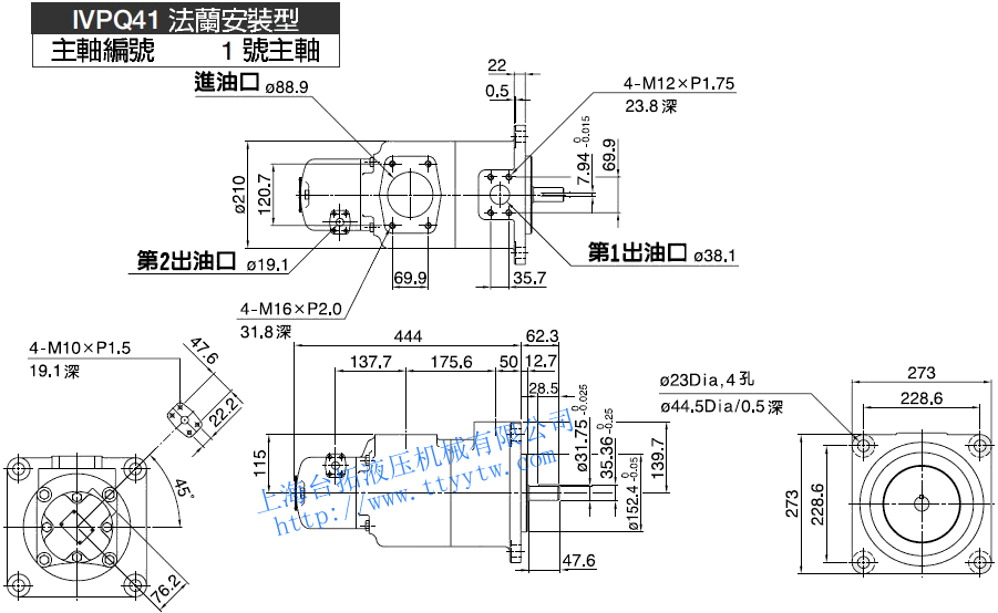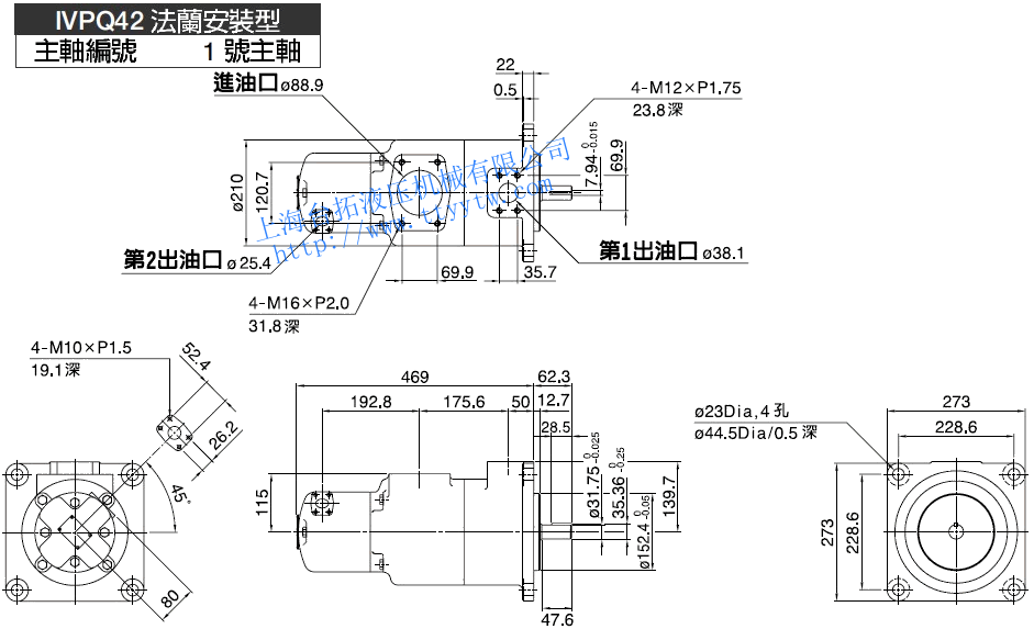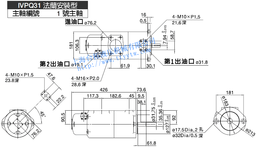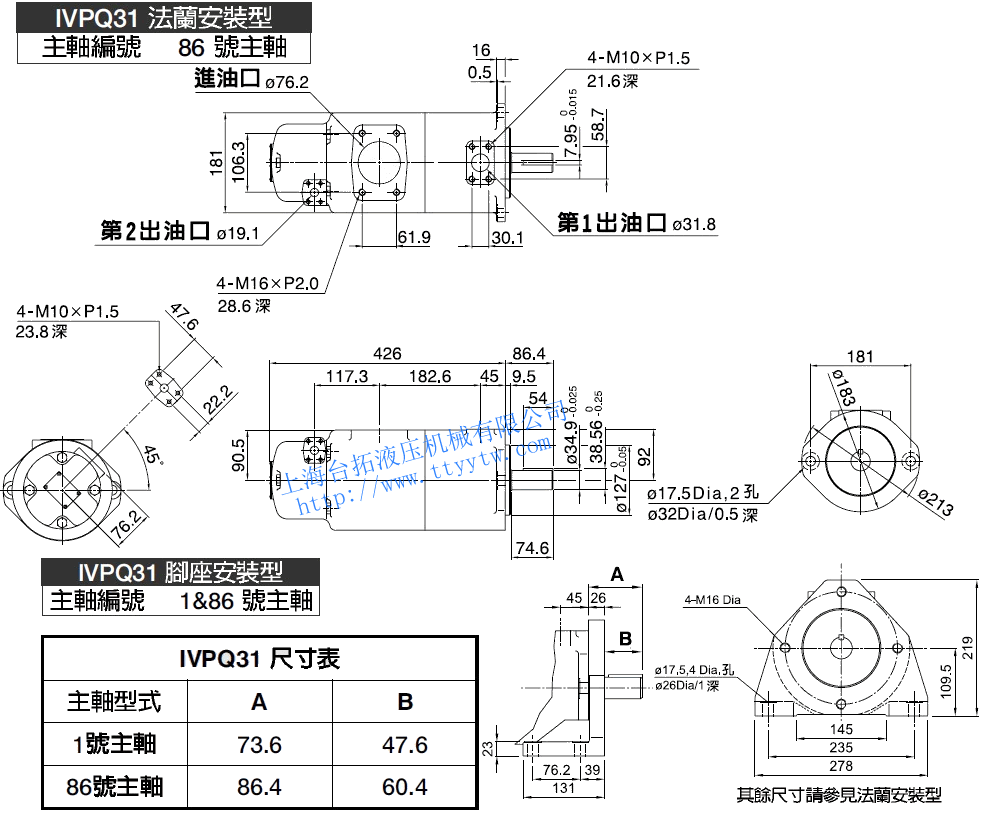 雙聯子母葉片定量泵IVPQ31(1號平鍵主軸)尺寸圖下載 雙聯子母葉片定量泵IVPQ31(86號平鍵主軸/1&86號主軸)尺寸圖下載