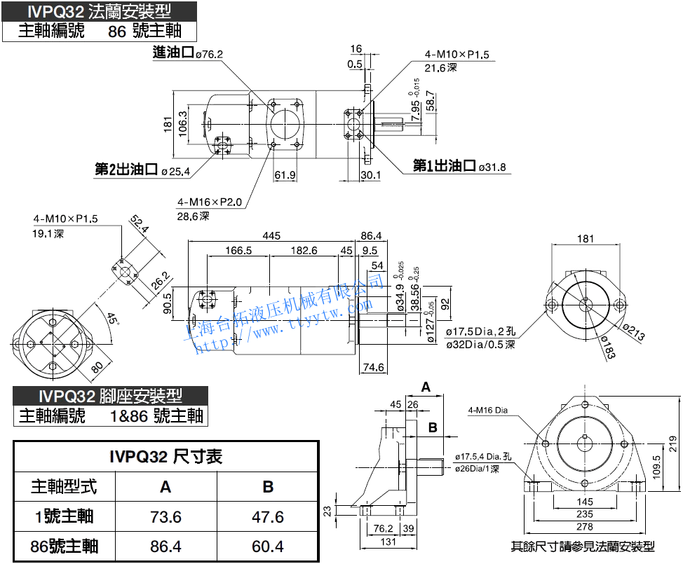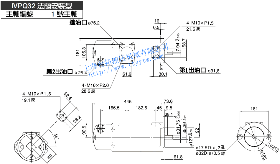 雙聯子母葉片定量泵IVPQ32(1號平鍵主軸)尺寸圖下載 雙聯子母葉片定量泵IVPQ32(86號平鍵主軸/1&86號主軸)尺寸圖下載