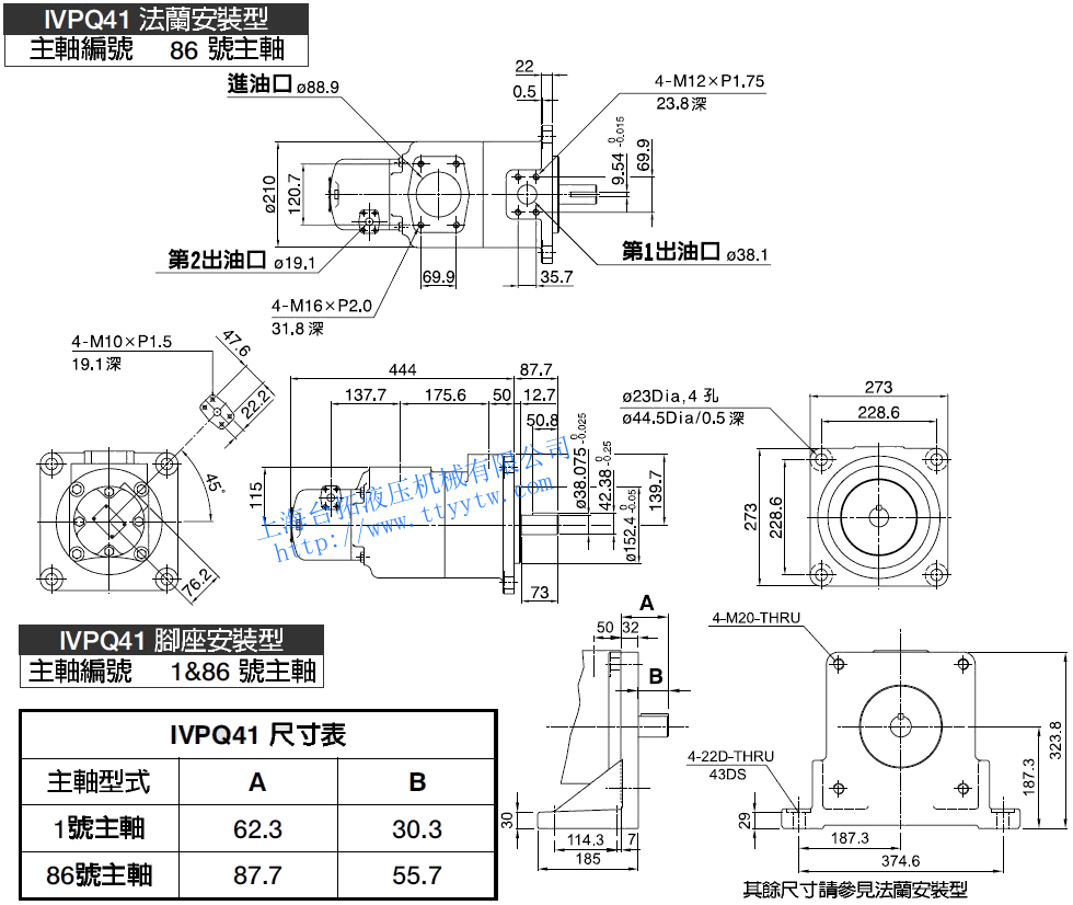 雙聯子母葉片定量泵IVPQ41(1號平鍵主軸)尺寸圖下載 雙聯子母葉片定量泵IVPQ41(86號平鍵主軸/1&86號主軸)尺寸圖下載