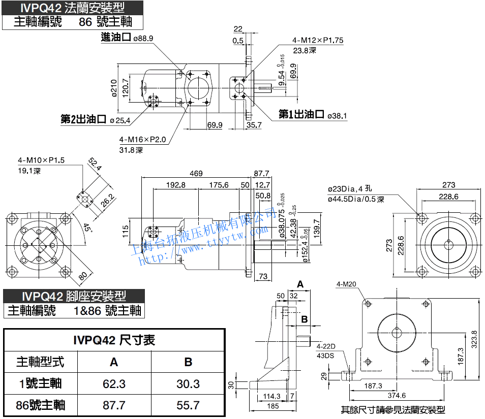 雙聯子母葉片定量泵IVPQ42(1號平鍵主軸)尺寸圖下載 雙聯子母葉片定量泵IVPQ42(86號平鍵主軸/1&86號主軸)尺寸圖下載