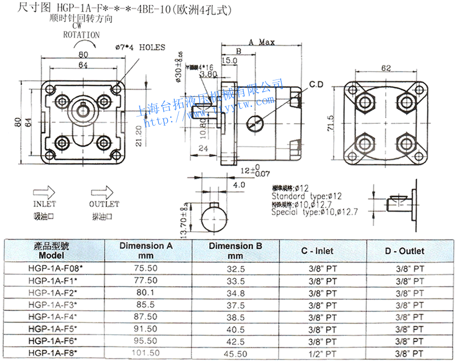 4DE:歐洲4孔式10 定量齒輪泵HGP-1A系列規(guī)格表