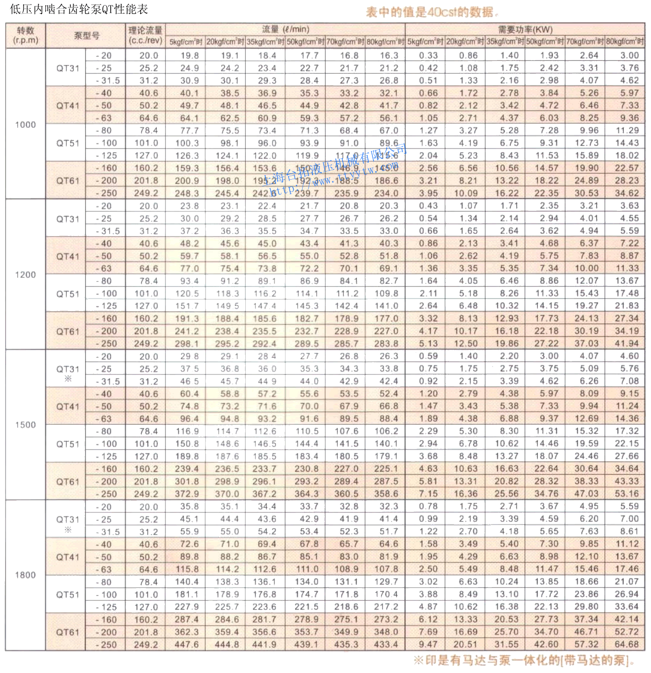 低壓內(nèi)嚙合齒輪泵QT規(guī)格表