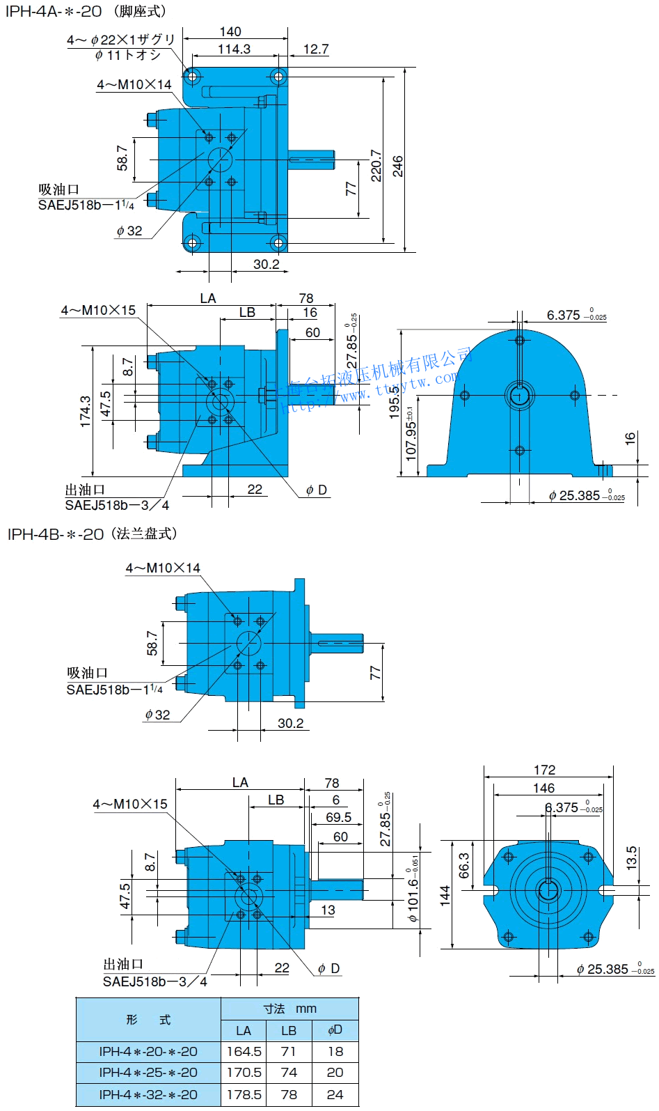IPH -4 B -25 -LT -20 系列號 尺寸 安裝方法 排量 輔助記號(自軸端看) 設計號 IPH系列IP泵 2,3,4