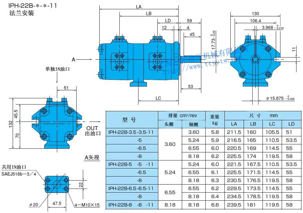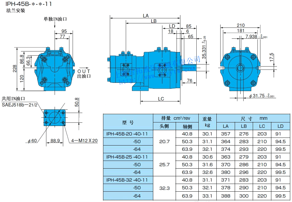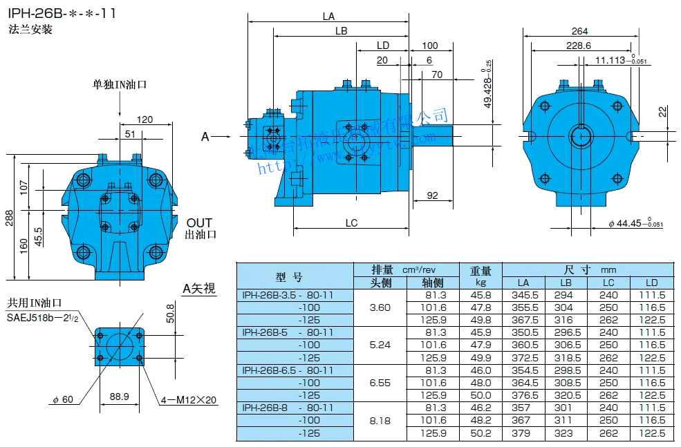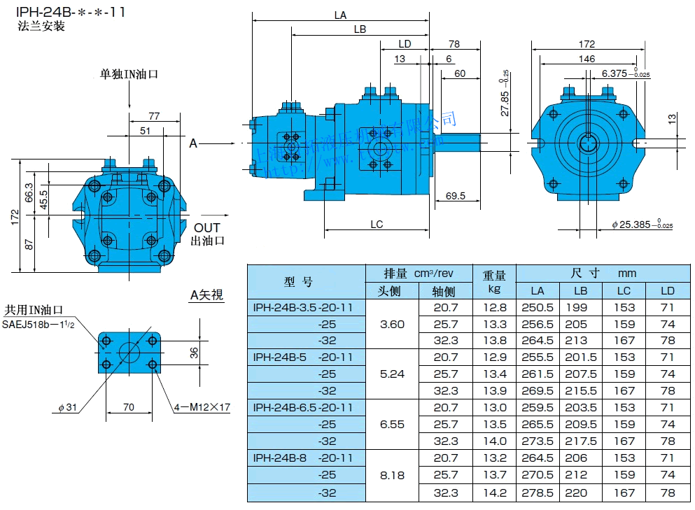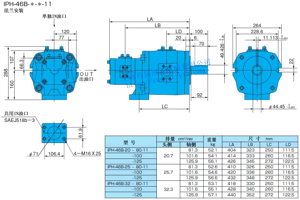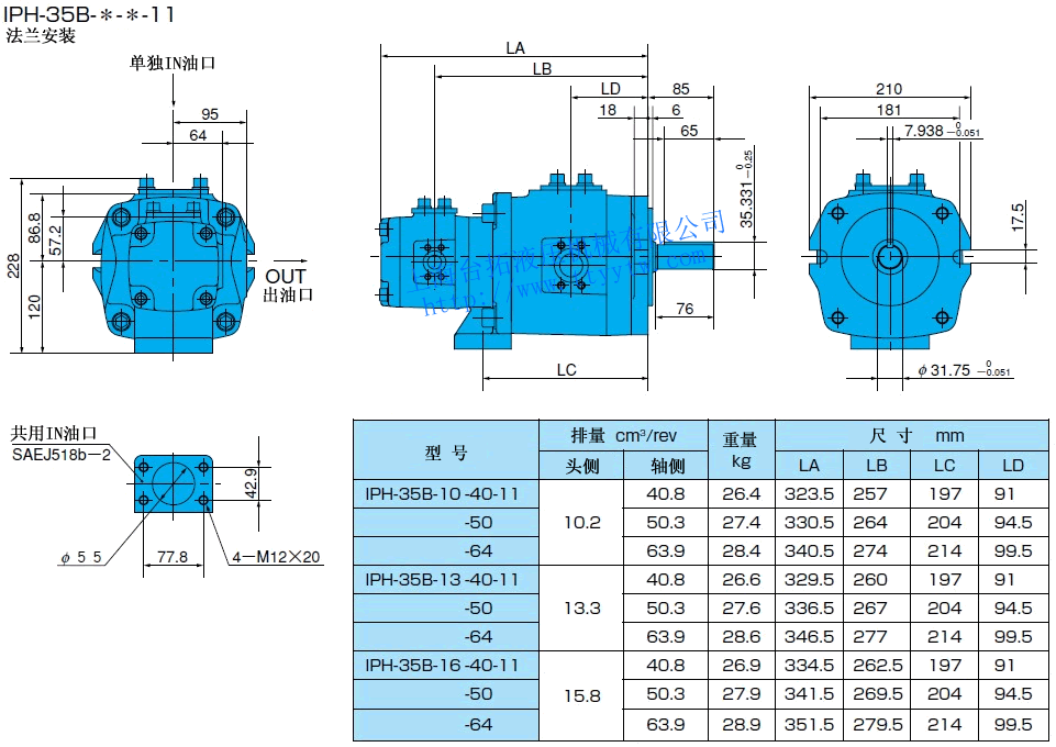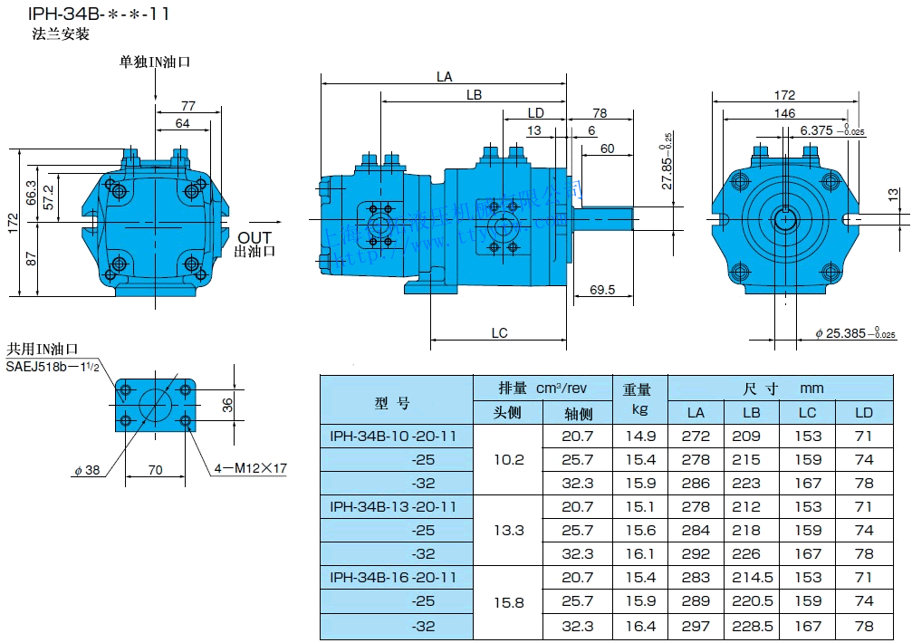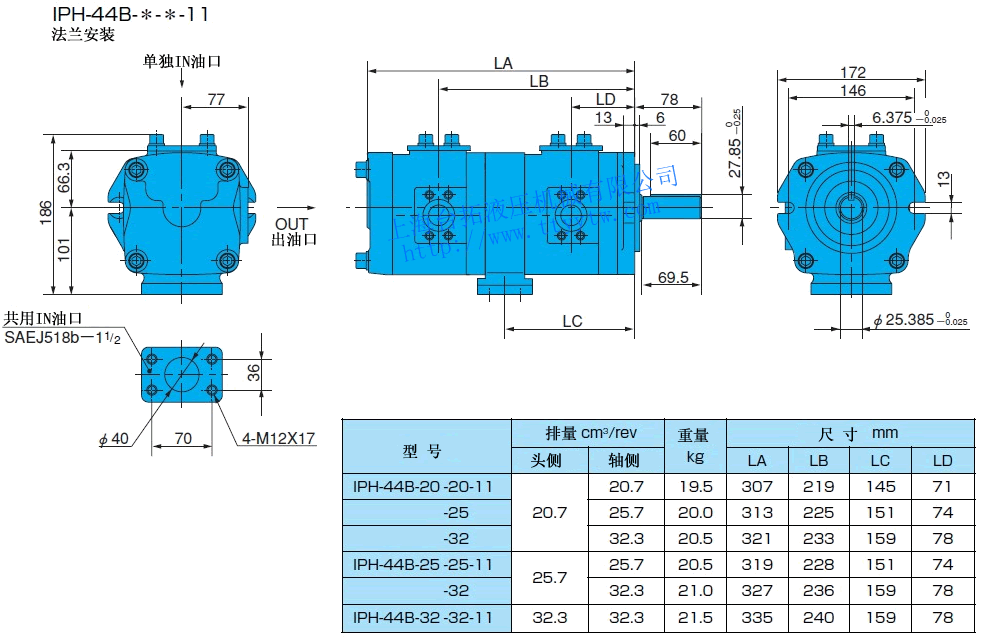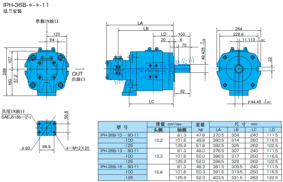 EE:帶熔接法蘭盤組件(使用單獨in油口)11 雙聯內嚙合齒輪泵IPH規格表
