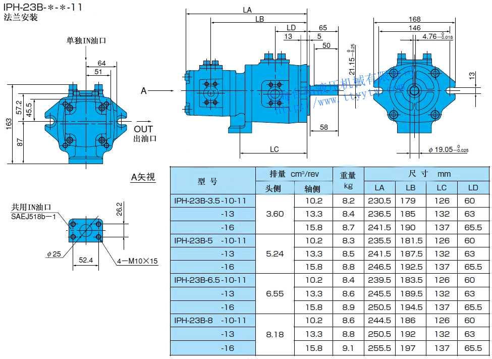 雙聯內嚙合齒輪泵IPH-24B-*-*-11尺寸圖下載 雙聯內嚙合齒輪泵IPH-25B-*-*-11尺寸圖下載