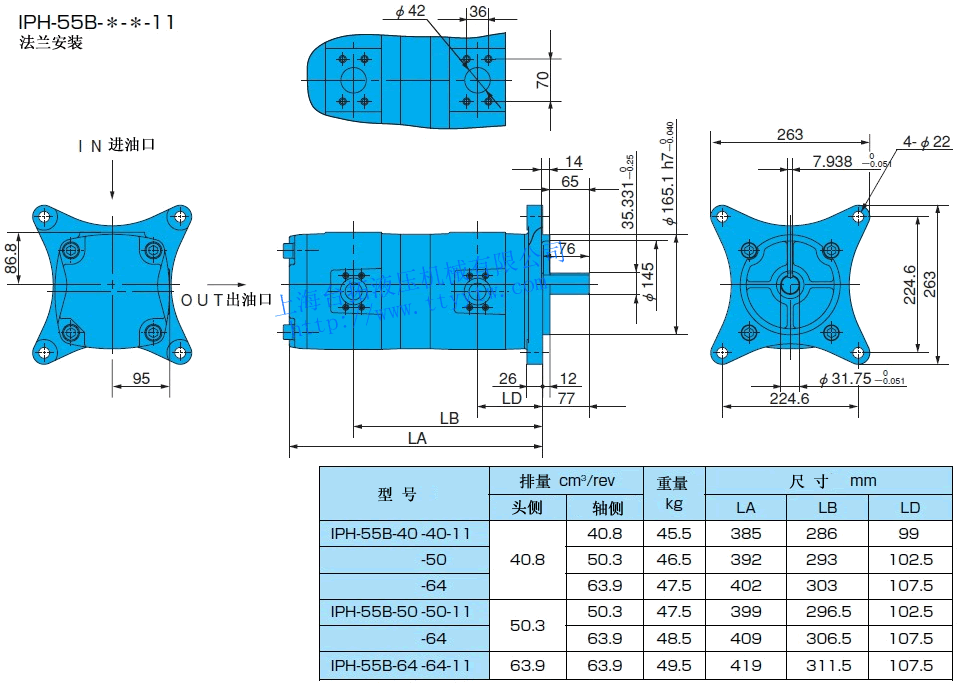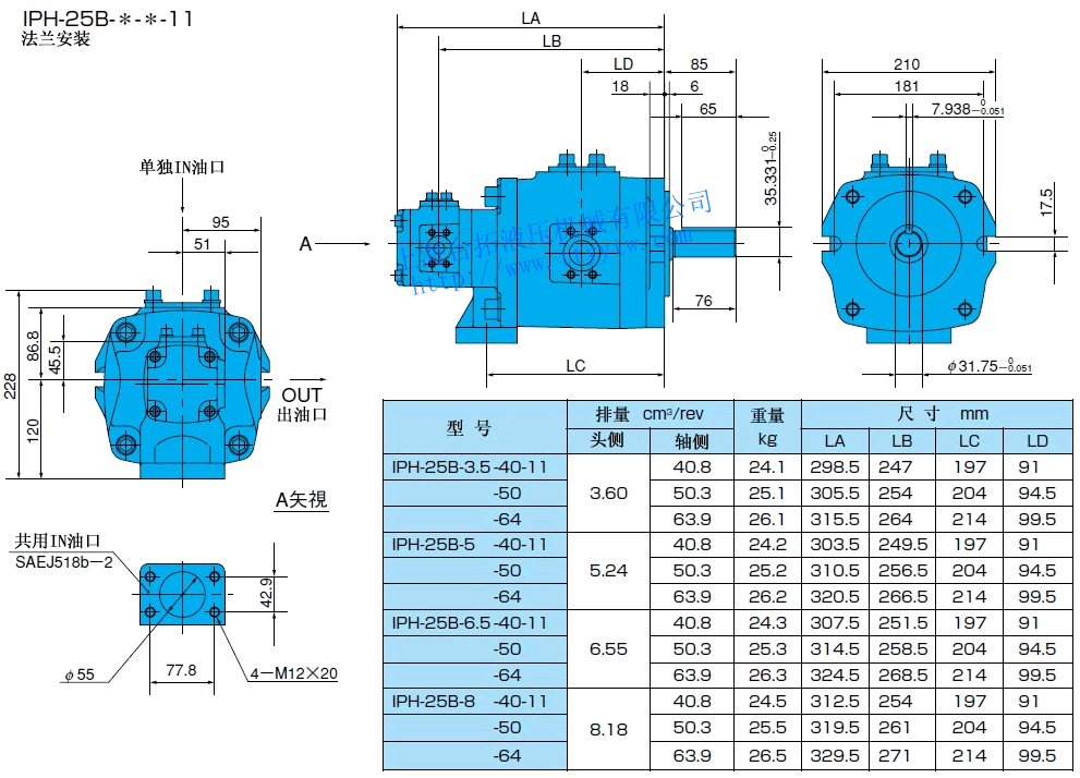 雙聯內嚙合齒輪泵IPH-46B-*-*-11尺寸圖下載 雙聯內嚙合齒輪泵IPH-55B-*-*-11尺寸圖下載