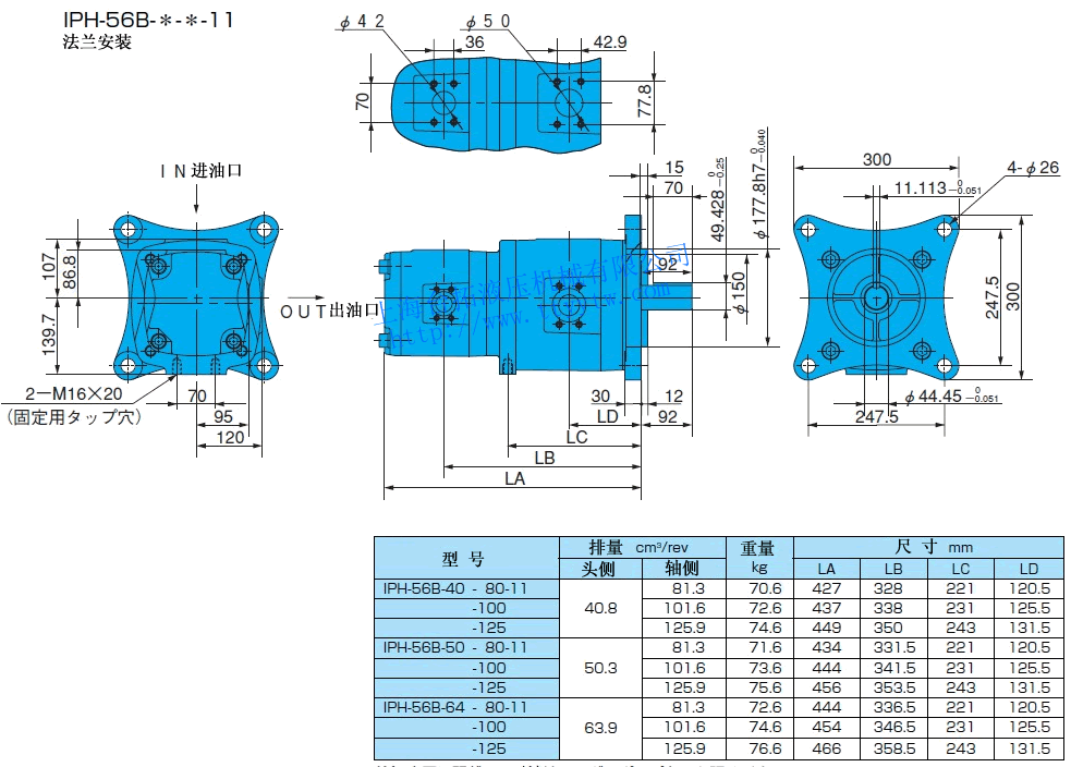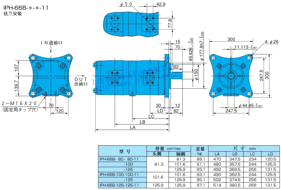 雙聯內嚙合齒輪泵IPH-56B-*-*-11尺寸圖下載 雙聯內嚙合齒輪泵IPH-66B-*-*-11尺寸圖下載
