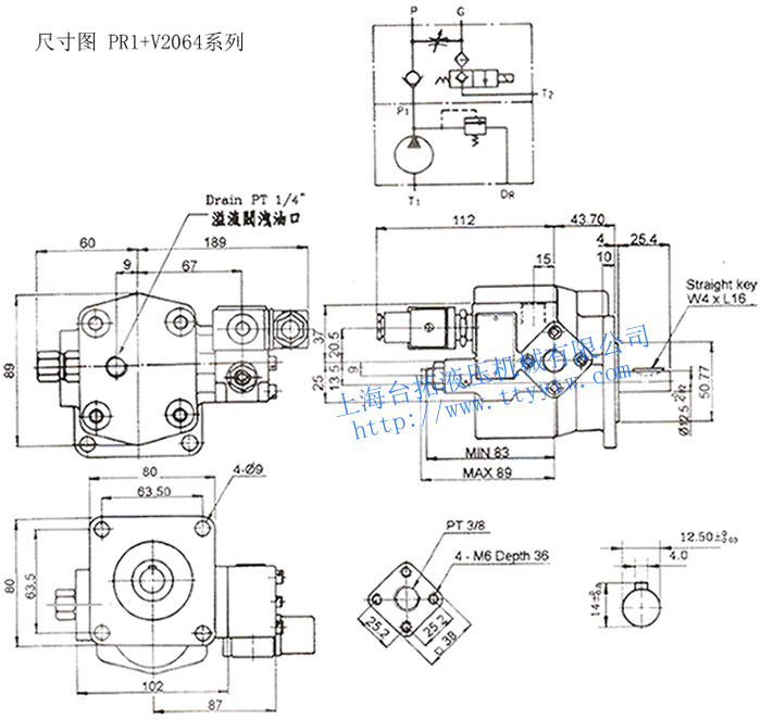 PR1+V2064210bar(3000 psi) 20LPM JIS 4孔式 齒輪泵附升降閥PR1+V2064系列尺寸圖