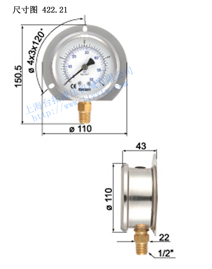 2、充油式壓力表422.21主要被使用于高壓力負載及激烈震動的工作環境。