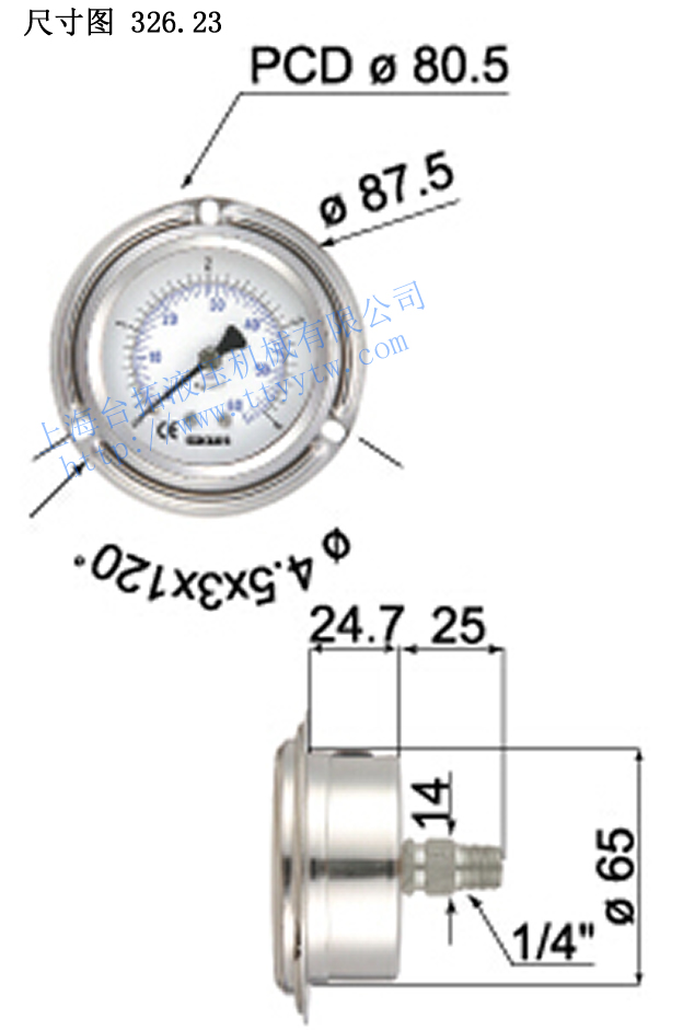 3、充油式不銹鋼壓力表326.23特別適用于食品業石化業等。