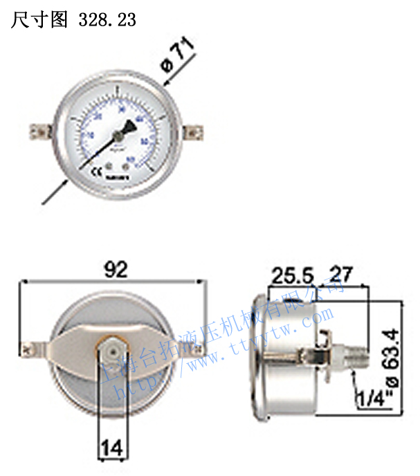 3、充油式不銹鋼壓力表328.23適用于食品業(yè)石化業(yè)等。