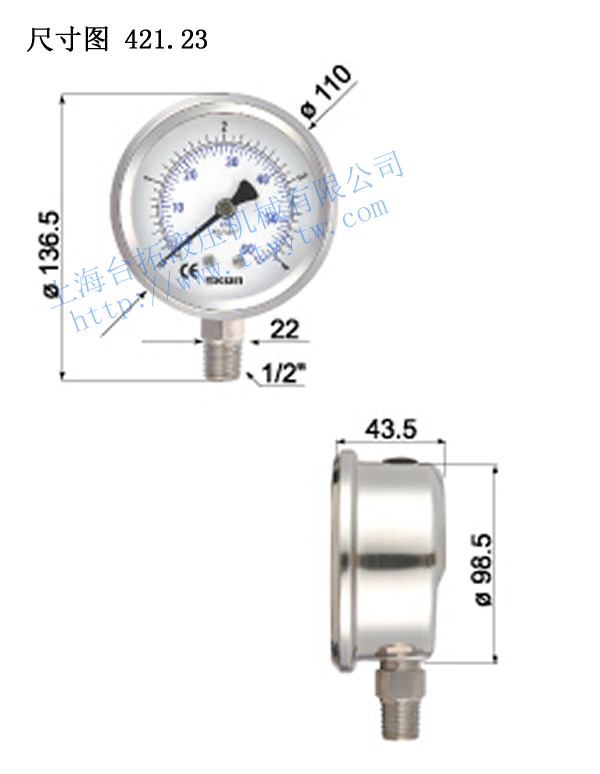 3、充油式不銹鋼壓力表421.23適用于食品業石化業等。
