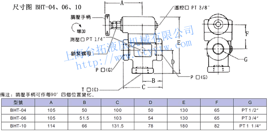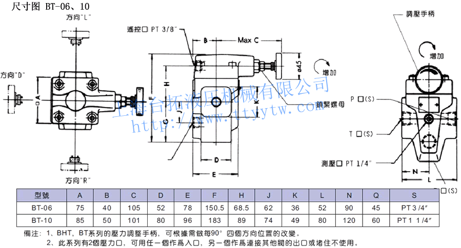 10:32通徑(1 1/4")請(qǐng)參照規(guī)格表 配管型先導(dǎo)式溢流閥BT,BHT規(guī)格表