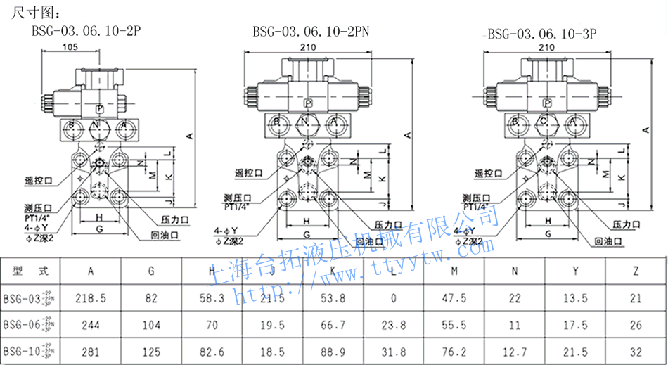 電磁控制溢流閥BST-06-2P/2PN/3P尺寸圖下載 電磁控制溢流閥BSG-03,06,10-1PN/1NP尺寸圖下載