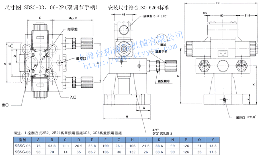電磁溢流閥SBSG-03,06-L/R尺寸圖下載 電磁溢流閥SBSG-03,06-2P(雙調節手柄)尺寸圖下載