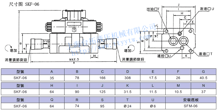 SKF -06 - D4-02-2B2-A2 系列號碼 規(guī)格 附注 搭配電磁閥規(guī)格 電磁控制調(diào)速閥 06