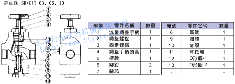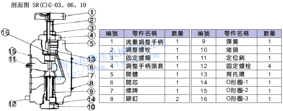 10:1-1/4"節流閥,單向節流閥SR系列規格表