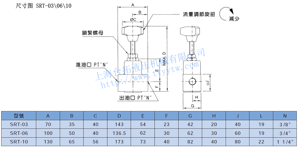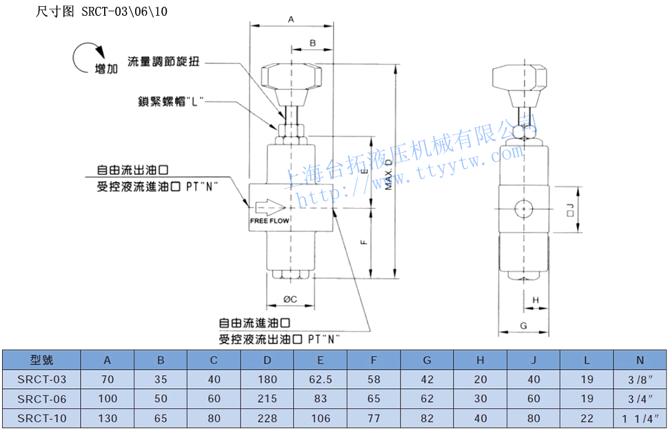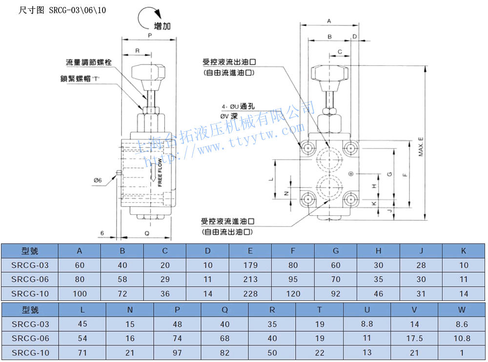 節流閥SRT-03,06,10尺寸圖下載 單向節流閥SRCT-03,06,10尺寸圖下載