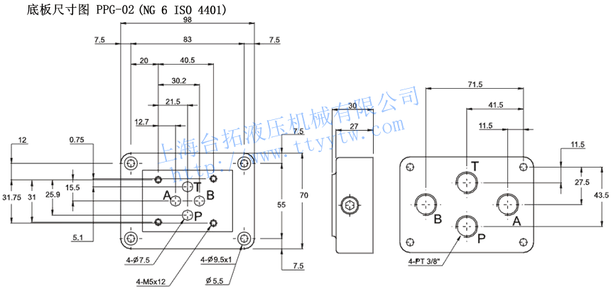 超高響應(yīng)電液比例壓力閥PPG-02底板尺寸圖