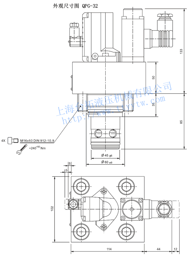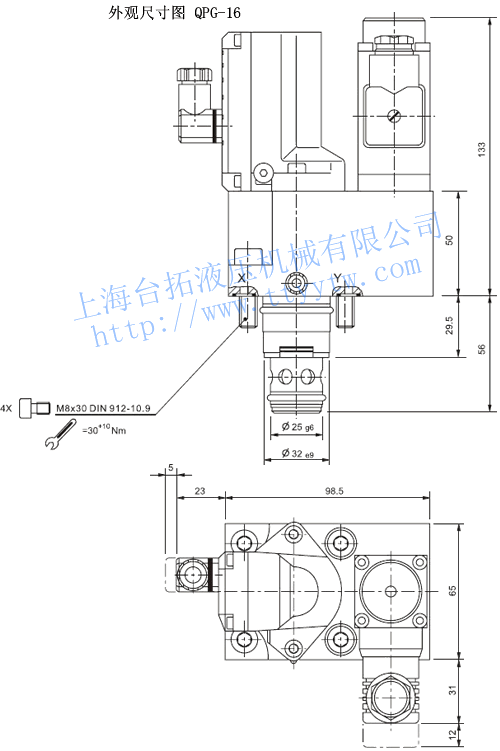 超高響應電液比例流量閥QPG-16外觀尺寸圖下載 超高響應電液比例流量閥QPG-25外觀尺寸圖下載