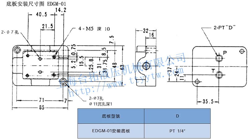 電液比例先導溢流閥EDGM底板安裝尺寸圖