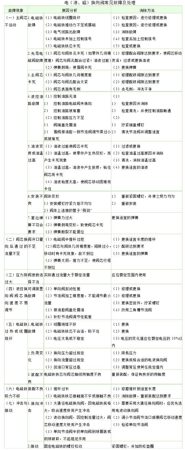 電(液、磁)換向閥常見故障及處理