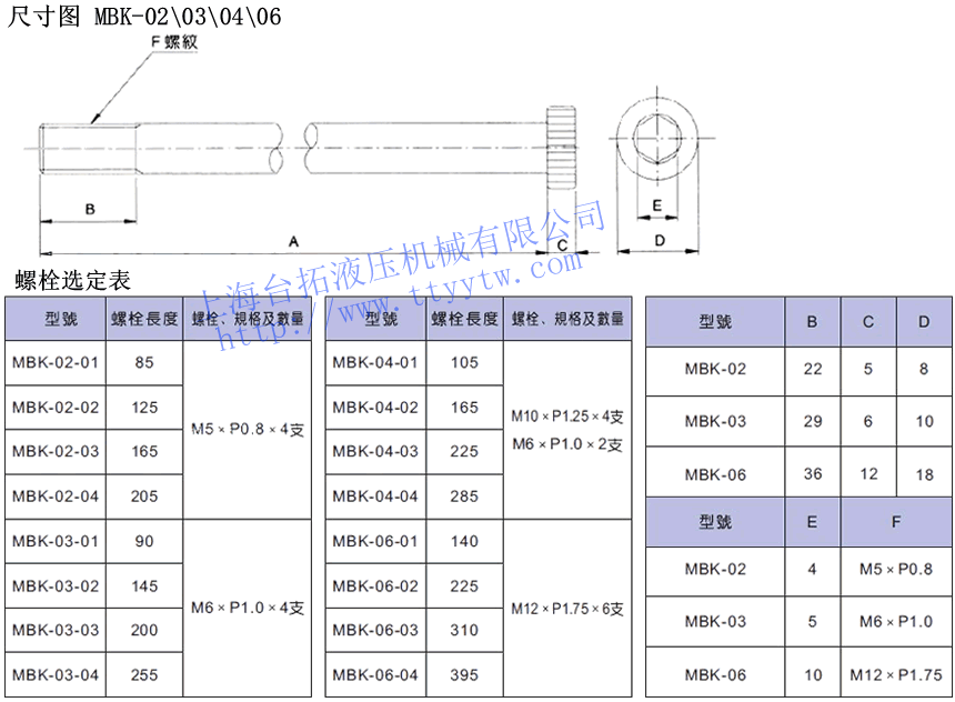 MBK -02 -1 系列號碼 規(guī)格 層數(shù) 疊加閥專用螺栓 02:1/4" 疊加閥用