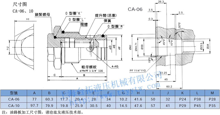 CA -06 -20 系列號碼 規格 開啟壓力 螺紋式