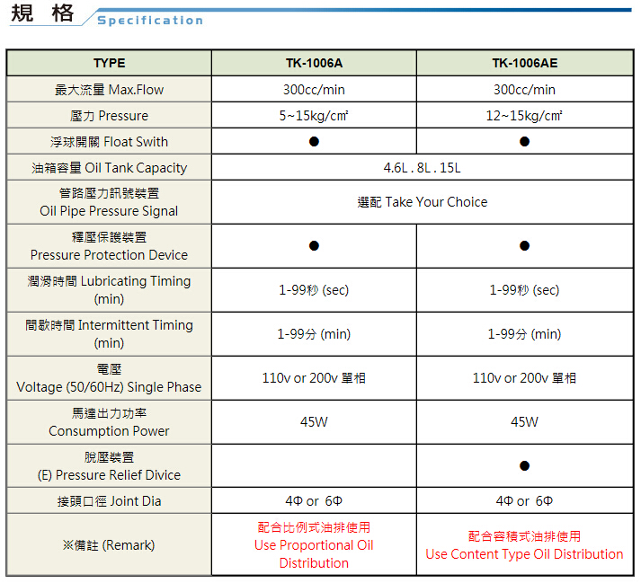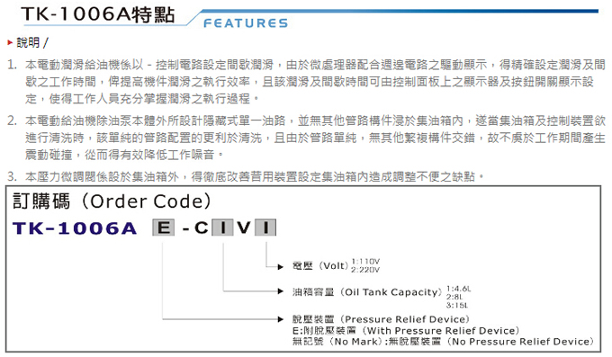 電動(dòng)潤(rùn)滑給油機(jī)TK-1006A規(guī)格表