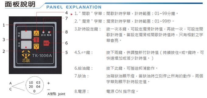 電動(dòng)潤(rùn)滑給油機(jī)TK-1006A面板說(shuō)明
