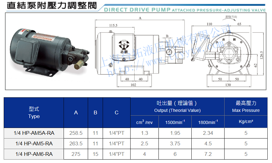 新型直結(jié)泵附調(diào)整閥1/4HP-AM5/5A/6規(guī)格尺寸