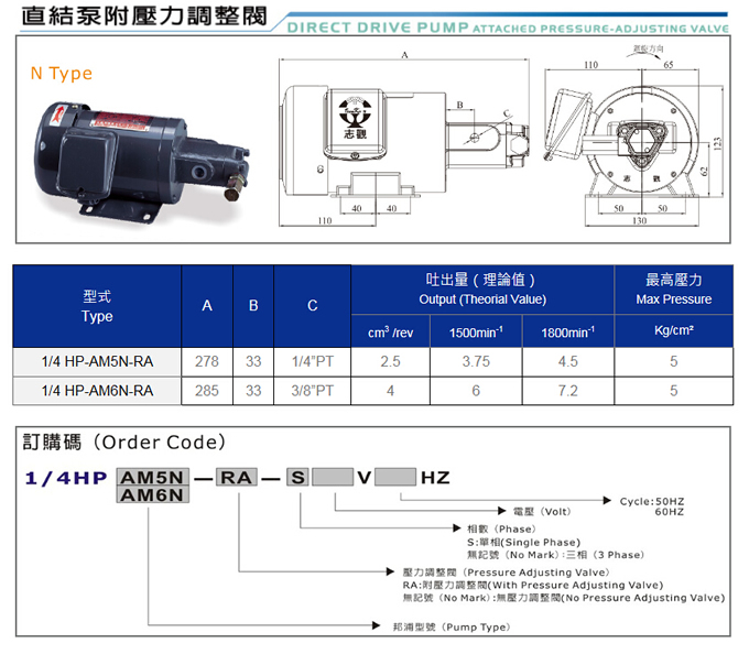 直結(jié)泵附調(diào)整閥1/4HP-AM5/5A/6訂購(gòu)型號(hào)