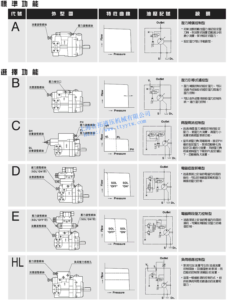 變量柱塞泵P08~P100控制功能方式