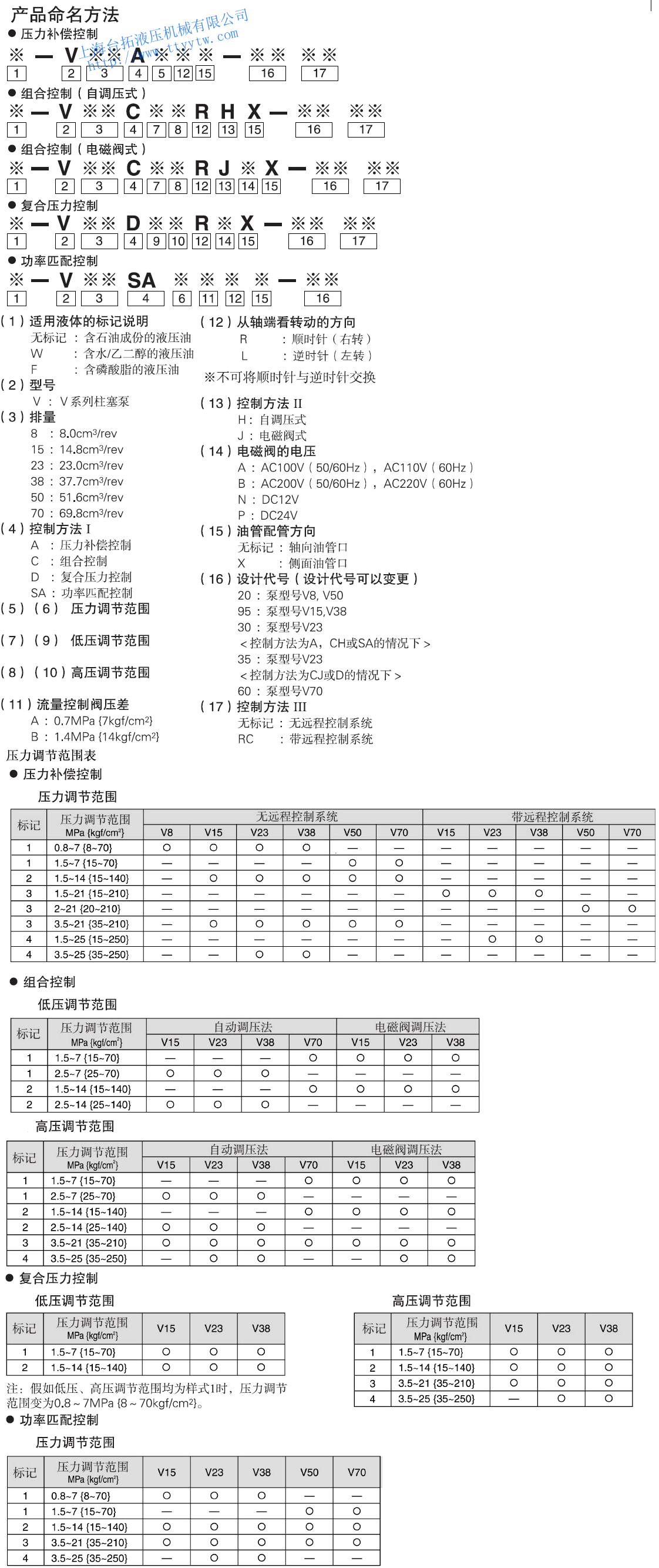 制系統備注:控制方法為A,CH或SA的情況下設計代號為35泵型號為V23。控制方法為CJ或D的情況下設計代號為60泵型號為V70。