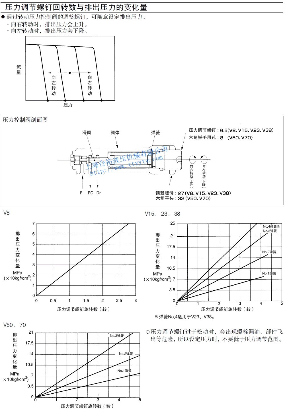 變量柱塞泵V系列壓力調節螺釘回轉數與排出壓力的變化量