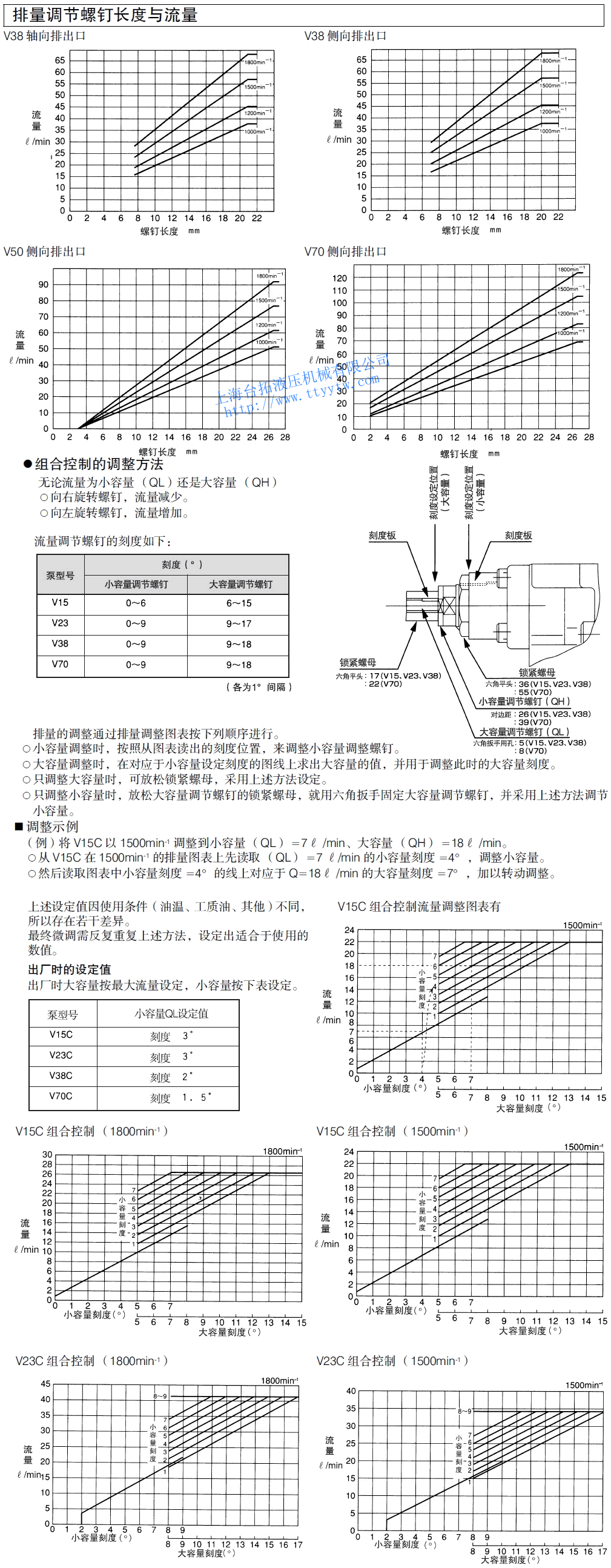 變量柱塞泵V系列排量調節螺釘長度與流量